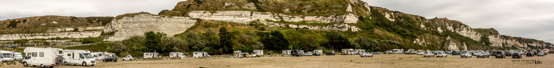 Übernachtet haben wir auf einem Stellplatz direkt neben einer Ölverladestation. Hört sich nicht so toll an, war aber ok. Ein schönes Panorama an den weißen Kreidefelsen, und nachts war es totenstill.
